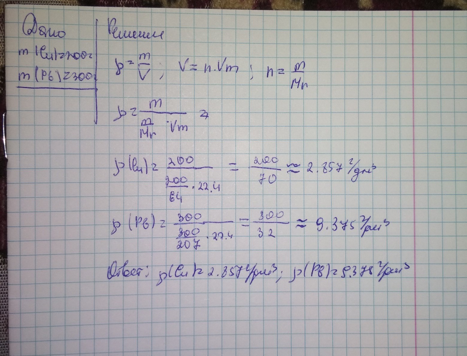 Дано: Масса меди = 200г, а масса свинца равна 300г. Так же у нас должна быть табличка, с объёмом данных металлов. (