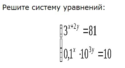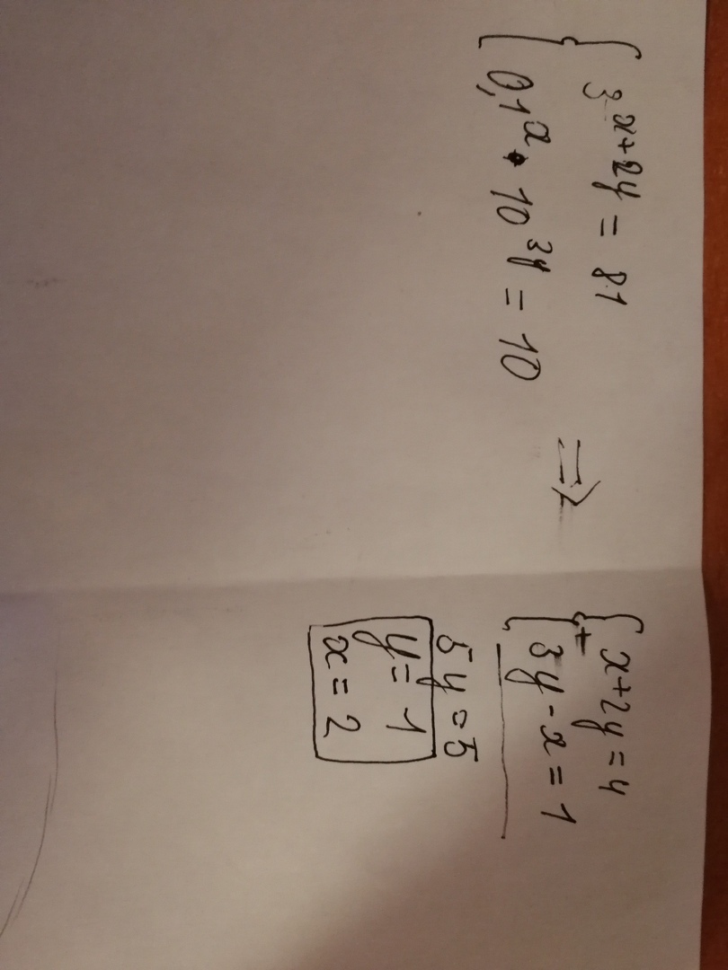 Решение на фото. Переход к другой системе основан на том, что 81 - это 3 в 4-й степени, 10 - 10 в первой степени, 0.1 в степени х - это 10 в степени -х.