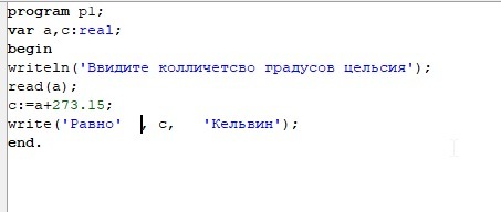 в программе паскаль АВС нужно из цельсия перевести в кельвины....числа любые..помогите пожалуйста