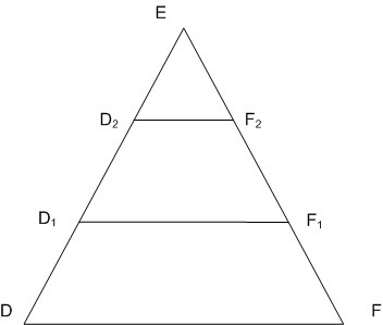 Прямые, параллельные одной из сторон треугольника отсекают от него треугольник, подобный данному, т.е. ΔDEF подобен ΔD₂EF₂ подобен ΔD₁EF₁.