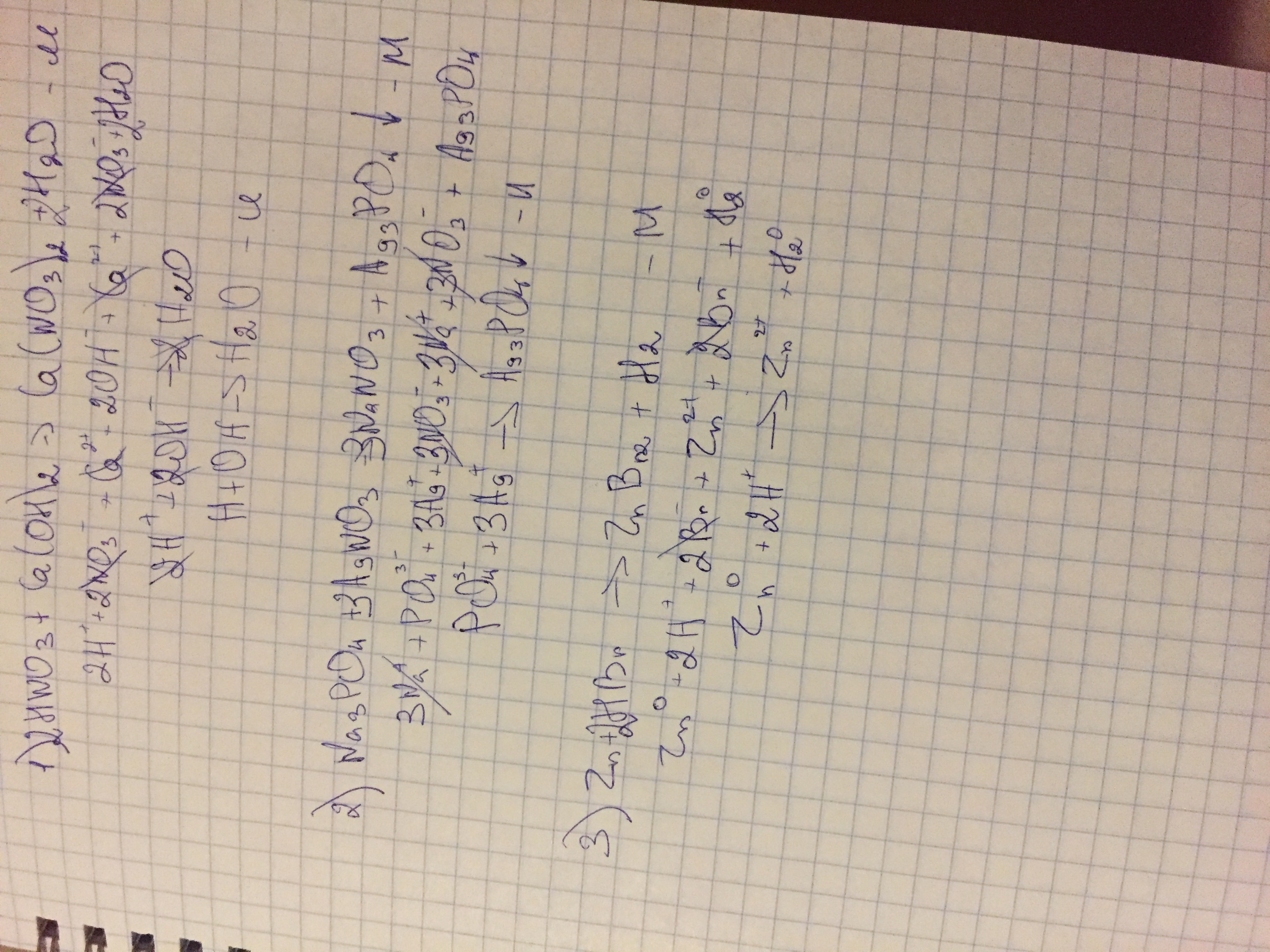 Составьте уравнения реакций в молекулярном и ионных видаҳ: азотная кислота + гидроксид кальция, фосфат натрия + нитрат серебра, цинк + бромоводородная кислота,