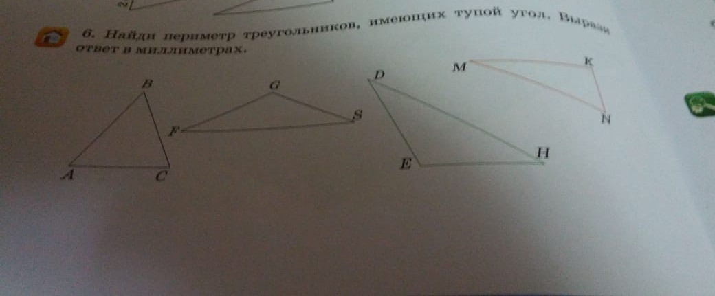 СРОЧНО !#6 Найди периметр треугольников имеющих тупой угол Вырази ответ в миллиметрах