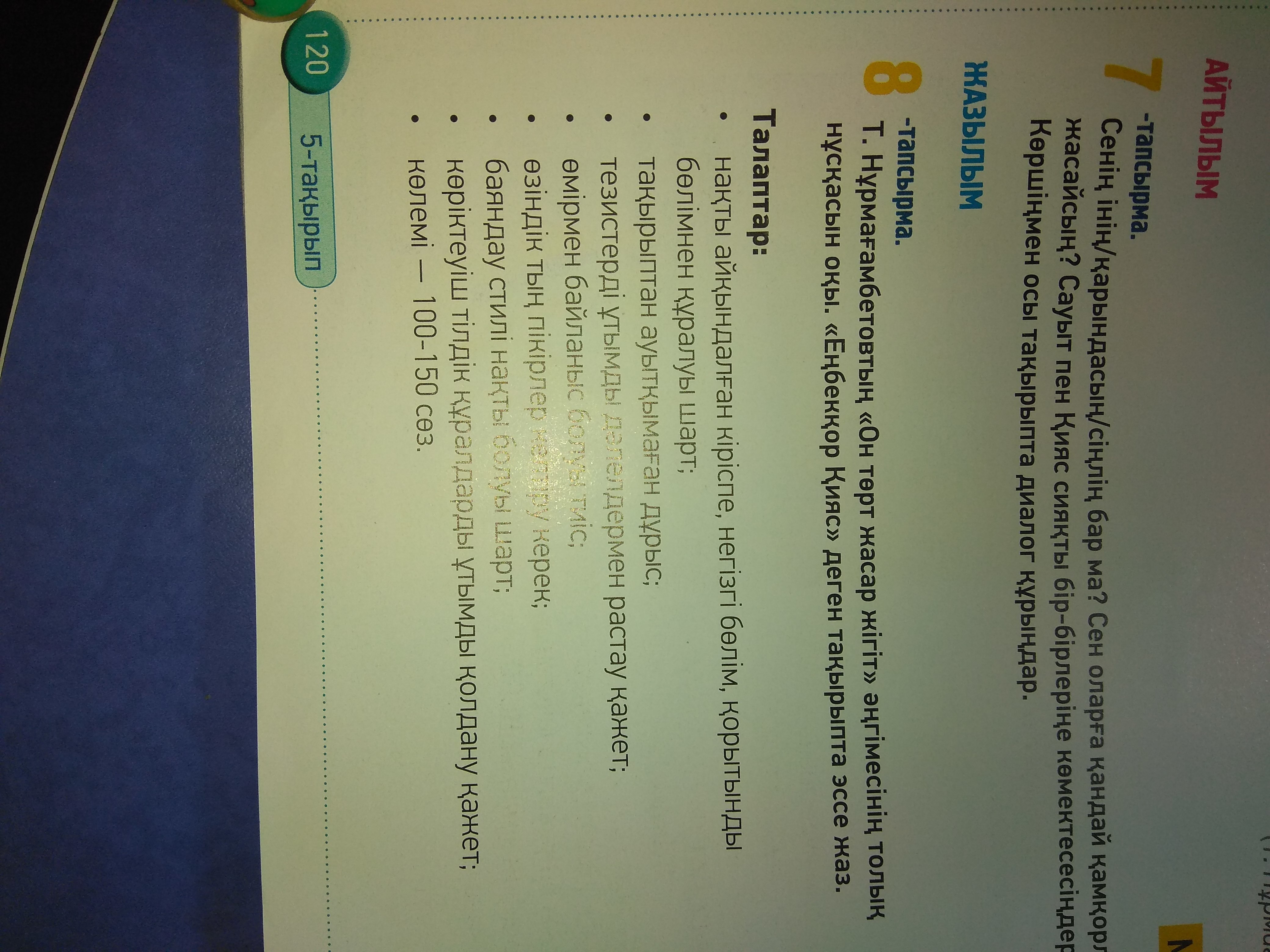 Т. Нурмағанбетовтың "он төрт жасар жігіт" әңгімесінің толық нұсқасын оқы. "Еңбекқор қияс" деген тақырыпта эссе жаз.