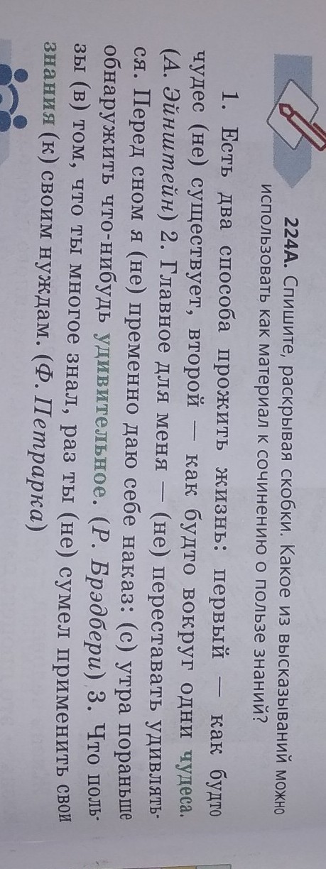 есть два способа прожить жизнь первый как будто чудес не существует ,второй как будтовокруг одни чудеса .Главное ждя меня -не переставать удивляться,Перед сном я непременно даю себе наказ :с утра пораньше обнаружить что-нибудь удивительное.Что пользы в том ,что ты многое знал,раз ты не сумел применить свои знания к своимнуждам . вот удачи в шкоде желаю 5