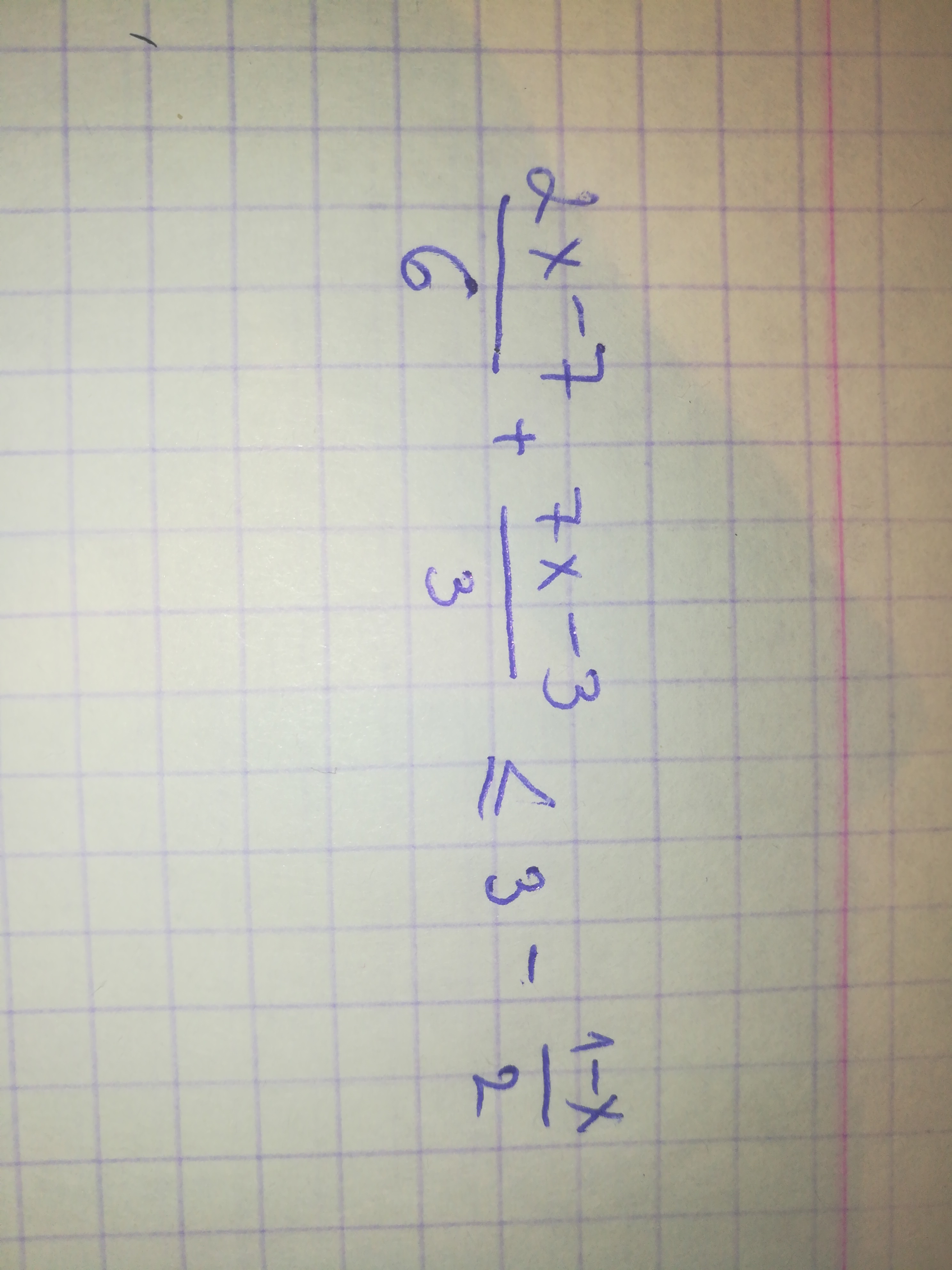 (2х - 7)/6 + (7х - 3)/3 ≤ 3 - (1 - х)/2
