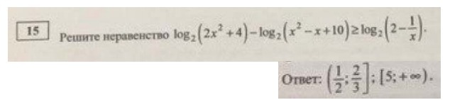 С учётом ОДЗ имеем ответ: (1/2) < x ≤ (2/3), 5 ≤ x < +∞.