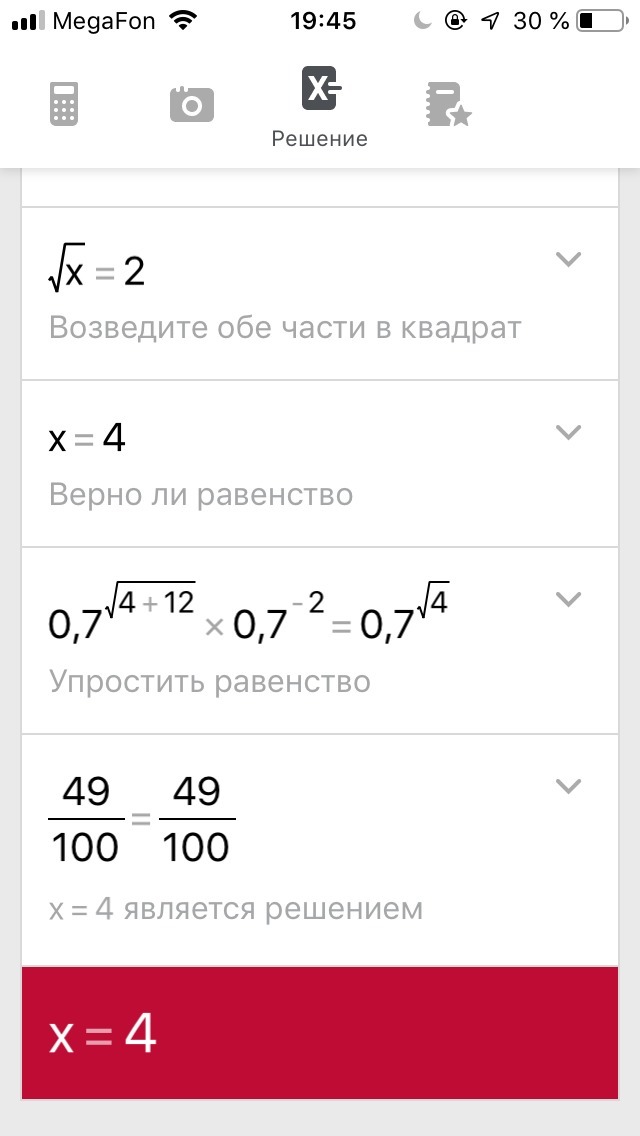 0.49=0.49 - так как части уравнения равны, то значение x найдено верно