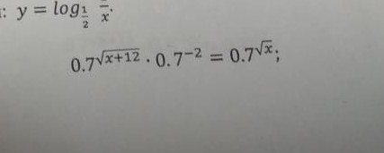 0.7^√x+12-2 = 0.7^√x (так как показатели одинаковы, приравниваем их)