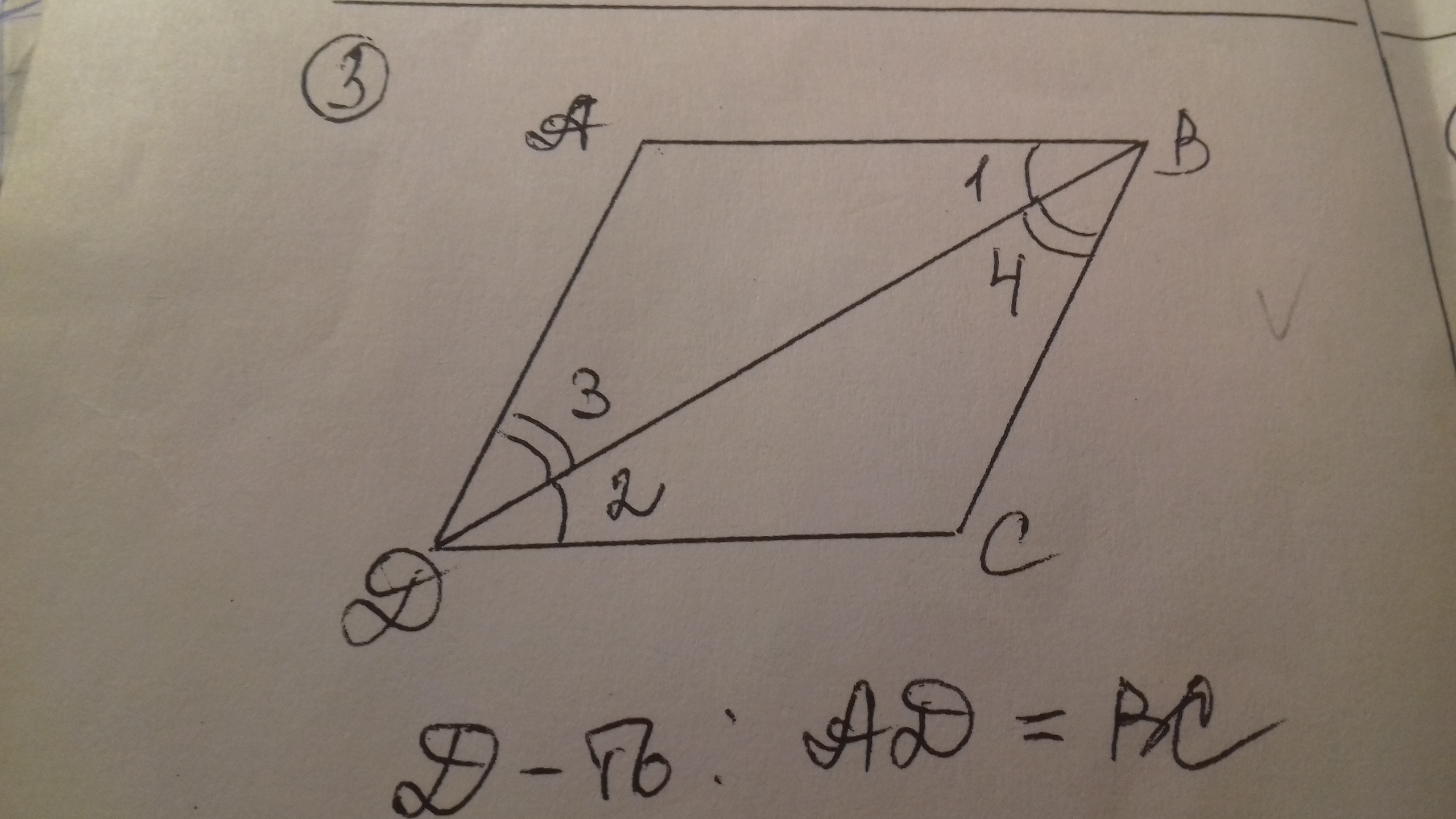 Из (1) и (2) следует, что ABCD - параллелограмм ⇒ AD=BC как противоположные стороны параллелограмма.