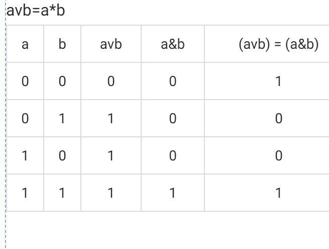 a| b |avb| a*b| avb=a*b