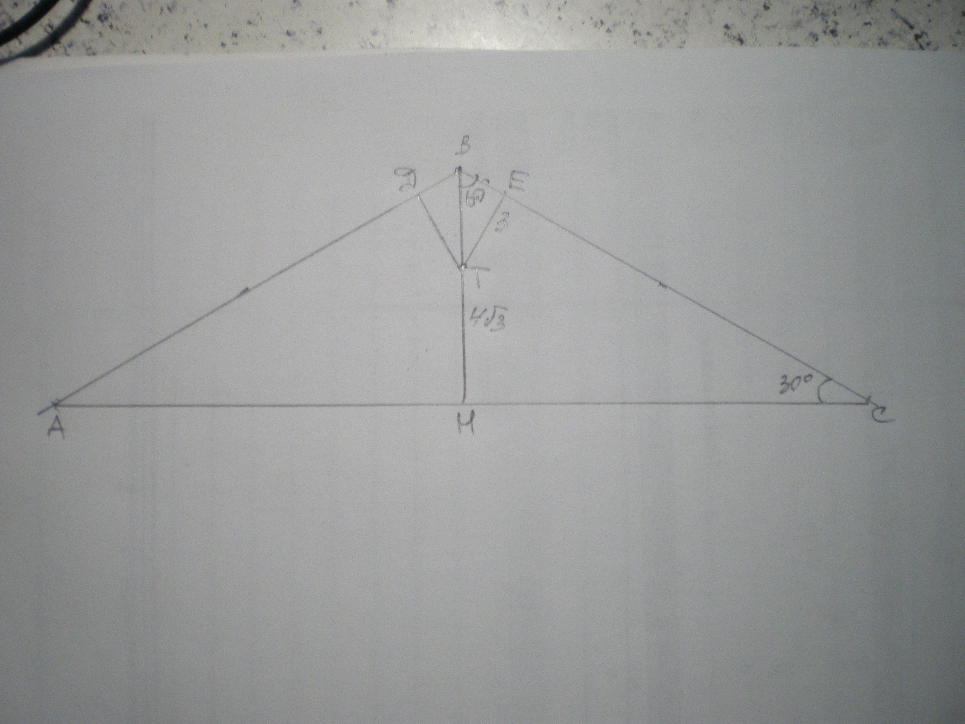 Дано: ΔАВС - равнобедренный, АВ=ВС, ∠В=120°, ДТ=ТЕ=3, ТН=4√3. Найти АС.