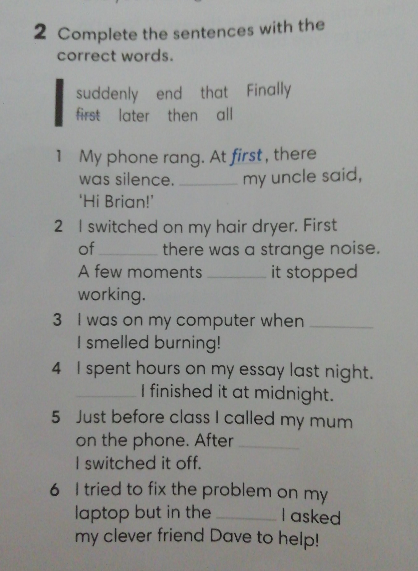 1 suddenly,2 all,3 then,4 later,5 finally,6that,7 end