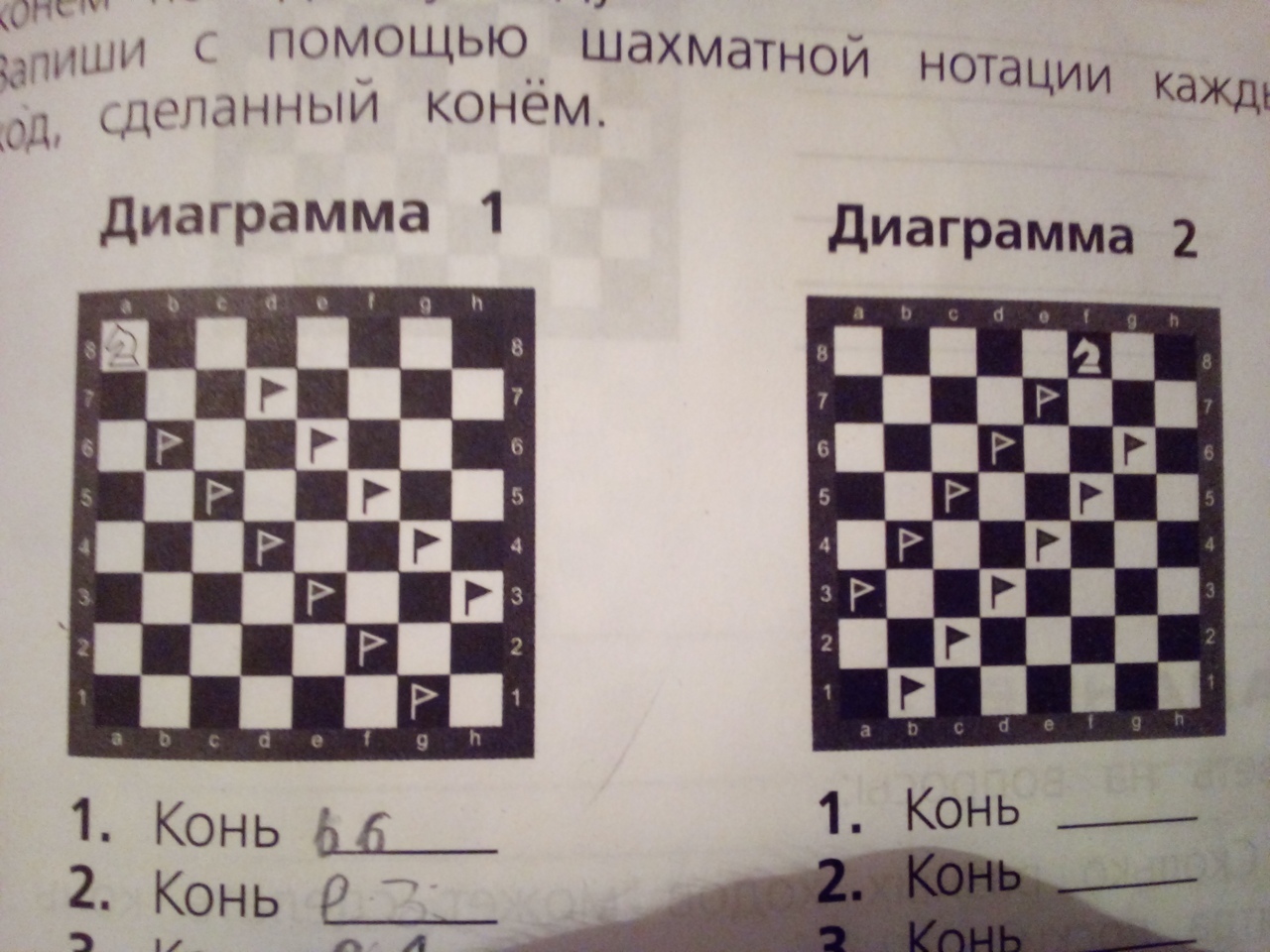На диаграммах 1 и 2 собери все флажки делая конем по одному ходу