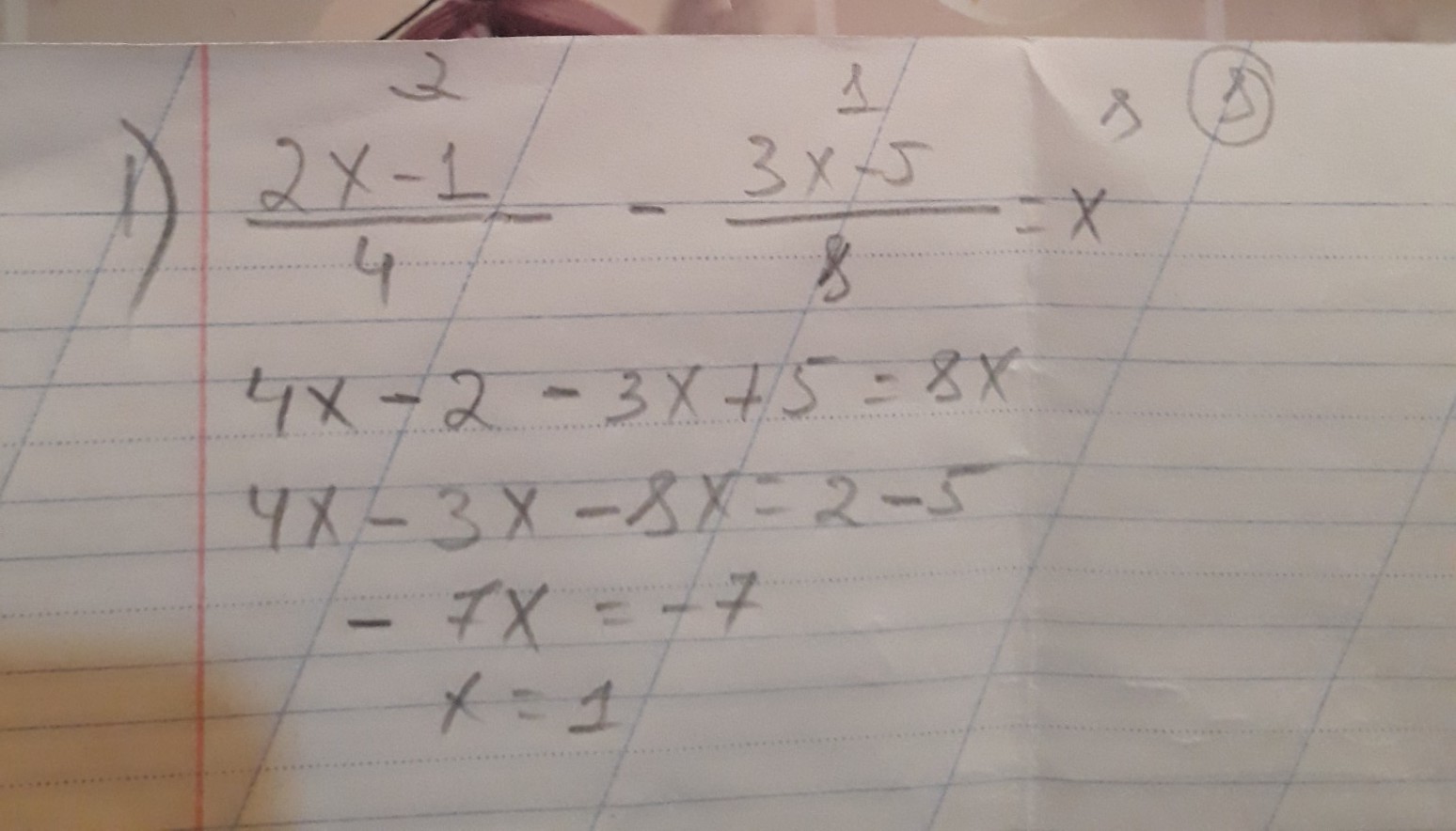 Решите уровнение: 1) 2x-1 черта дроби 4 - 3x-5 черта дроби 8 = x