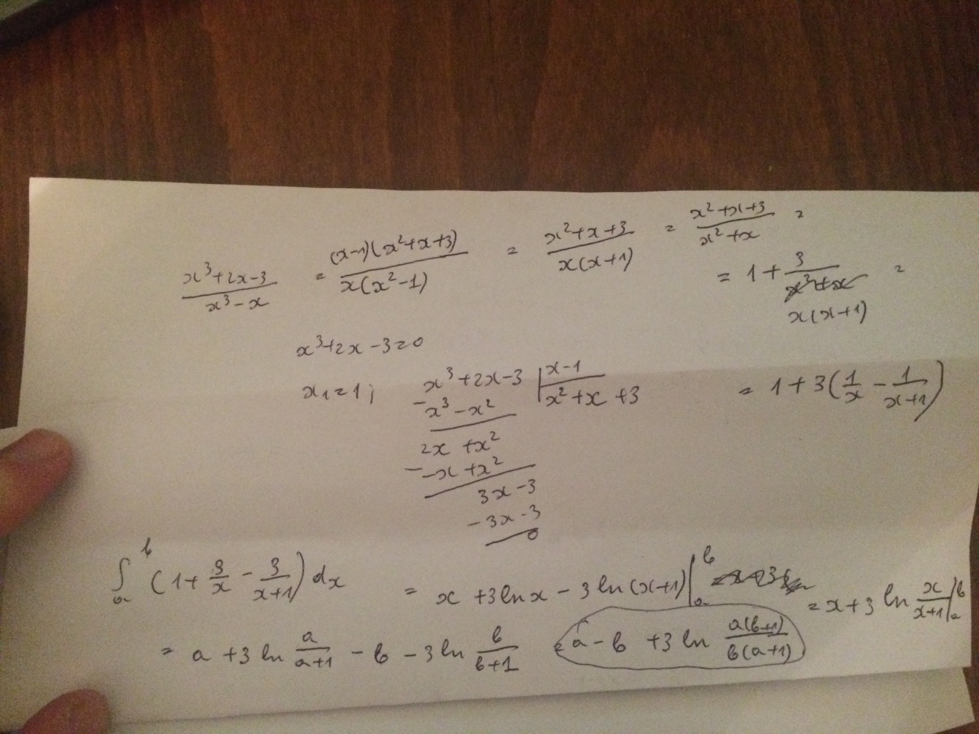 формулами там это все можно сократить к виду 1+3(1/x-1/(x+1)) и там найти интеграл уже совсем несложно