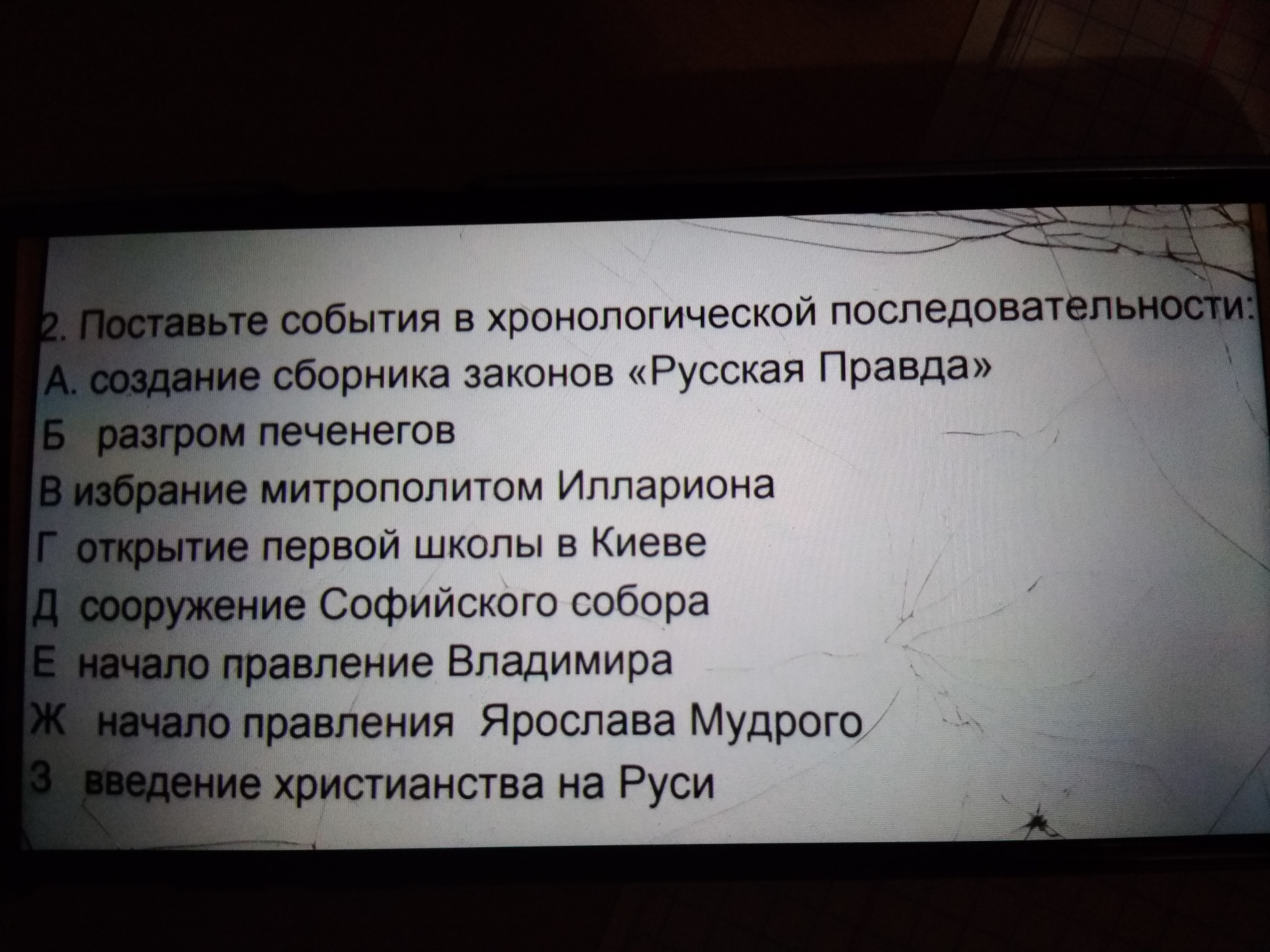 Начало Владимира----введение Христианства-----первые школы---- начало Ярослава----русская правда--- пкченеги----София( на месте разгрома печенегов)----Илларион