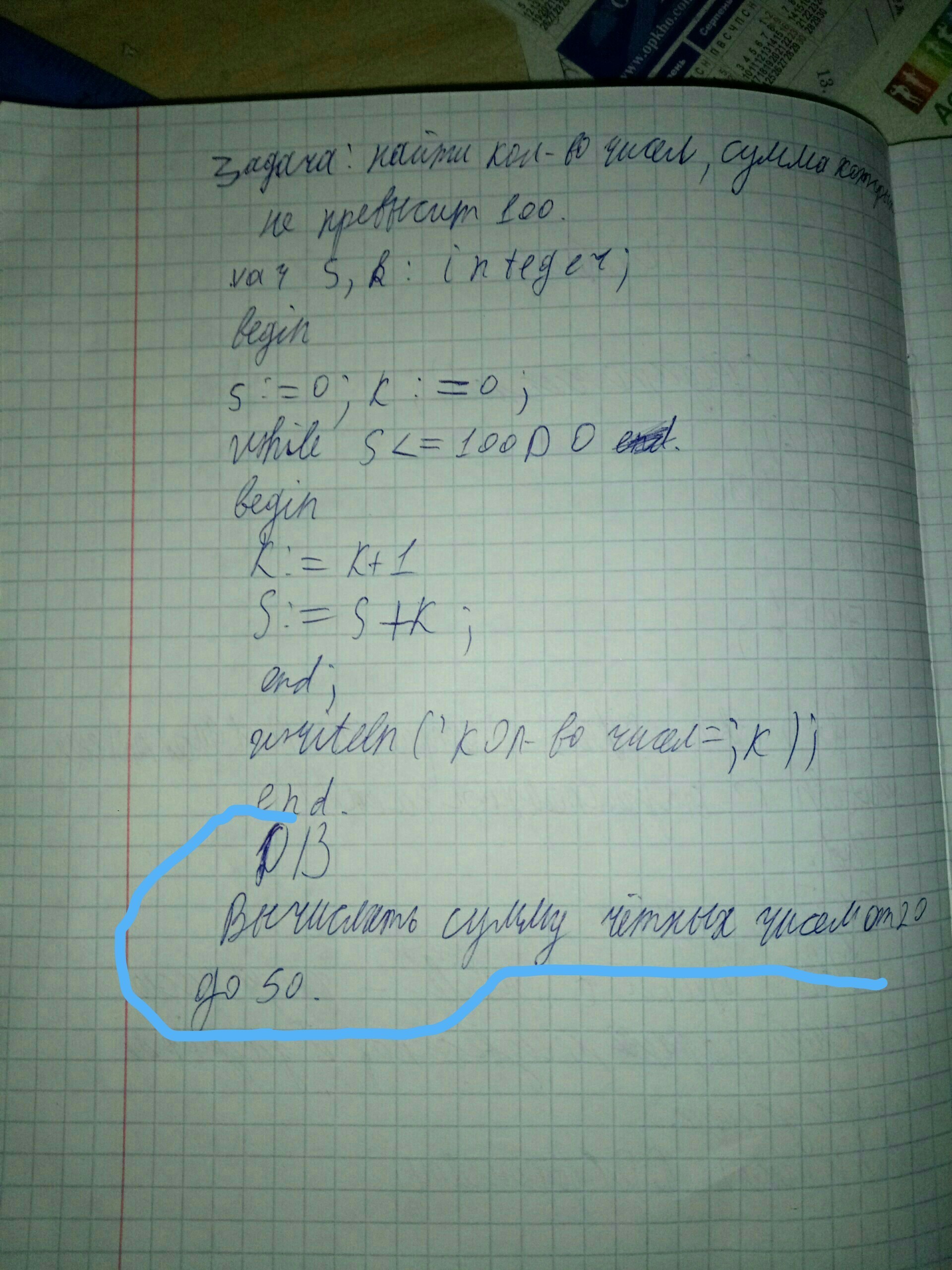 S:=0; k:=20;