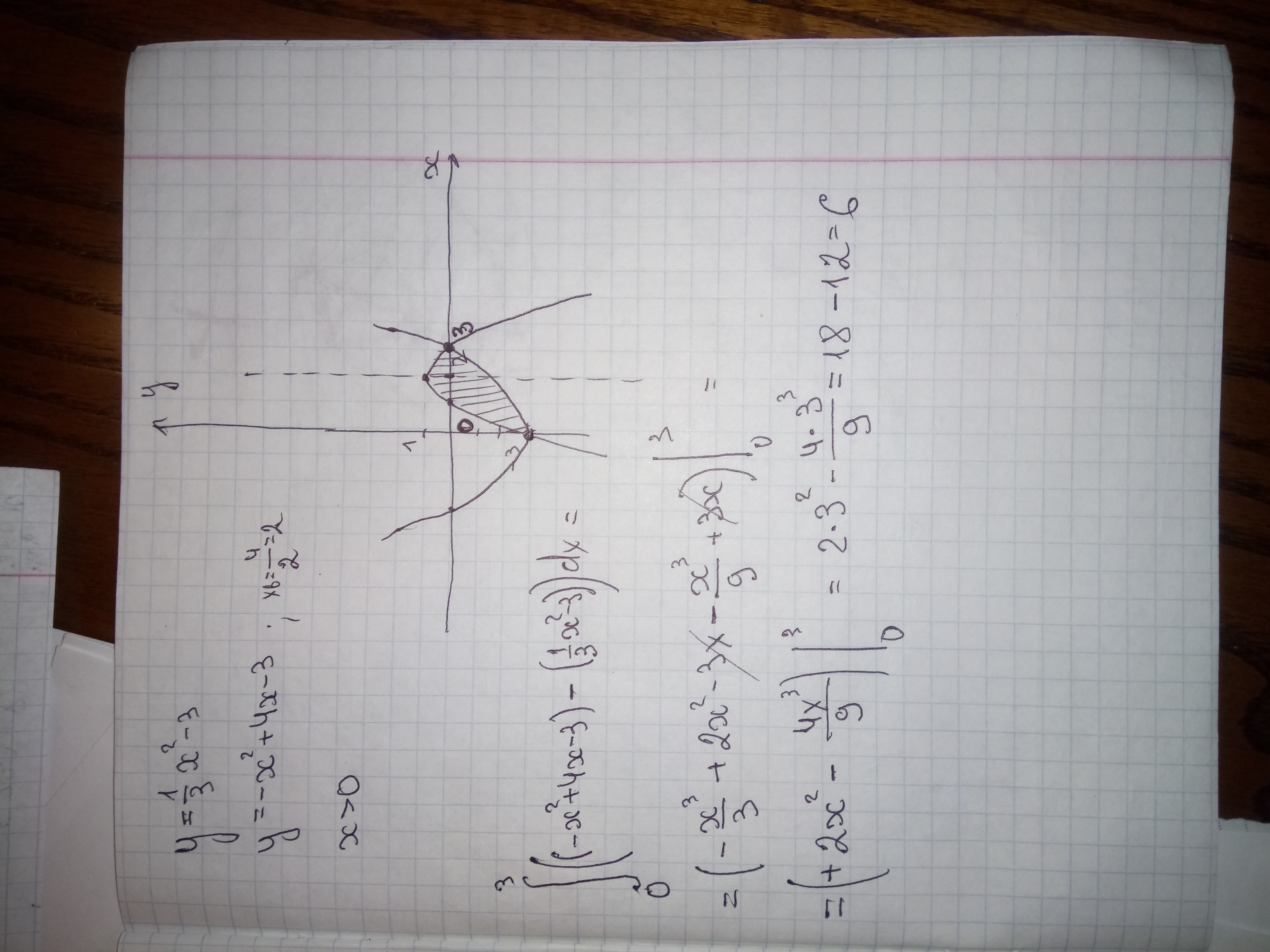 Найти площадь фигуры, ограниченной осью абсцисс, если х>0, и параболами y= 1/3 x^2-3 и y= -x^2+4x-3