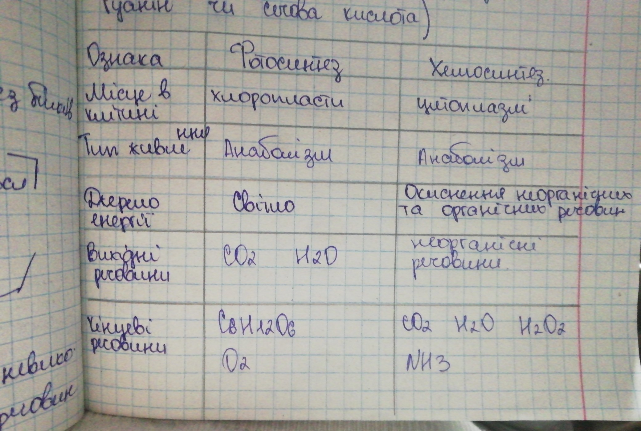 скинуть таблицу сравнения хемо и фотосинтеза?