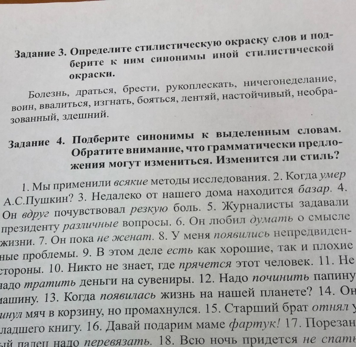 Всякие-разные,умер-скончался,базар-рынок,вдруг-внезапно,резкую-острую,различные-разные,думать-мыслить,не женат-холост,появились-возникли,есть-имеются,прячется-скрывается,тратить-расходовать,починить-ремонтировать или исправить,появилась-образовалась или возникла,кинул-бросил,отнял-отобрал,фартук-передник,перевязать-обмотать,не спать-бдеть или бодрствовать.