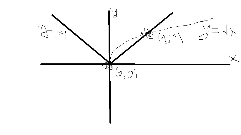 Строим два графика и находим 2 точки пересечения (0; 0) и (1; 1)