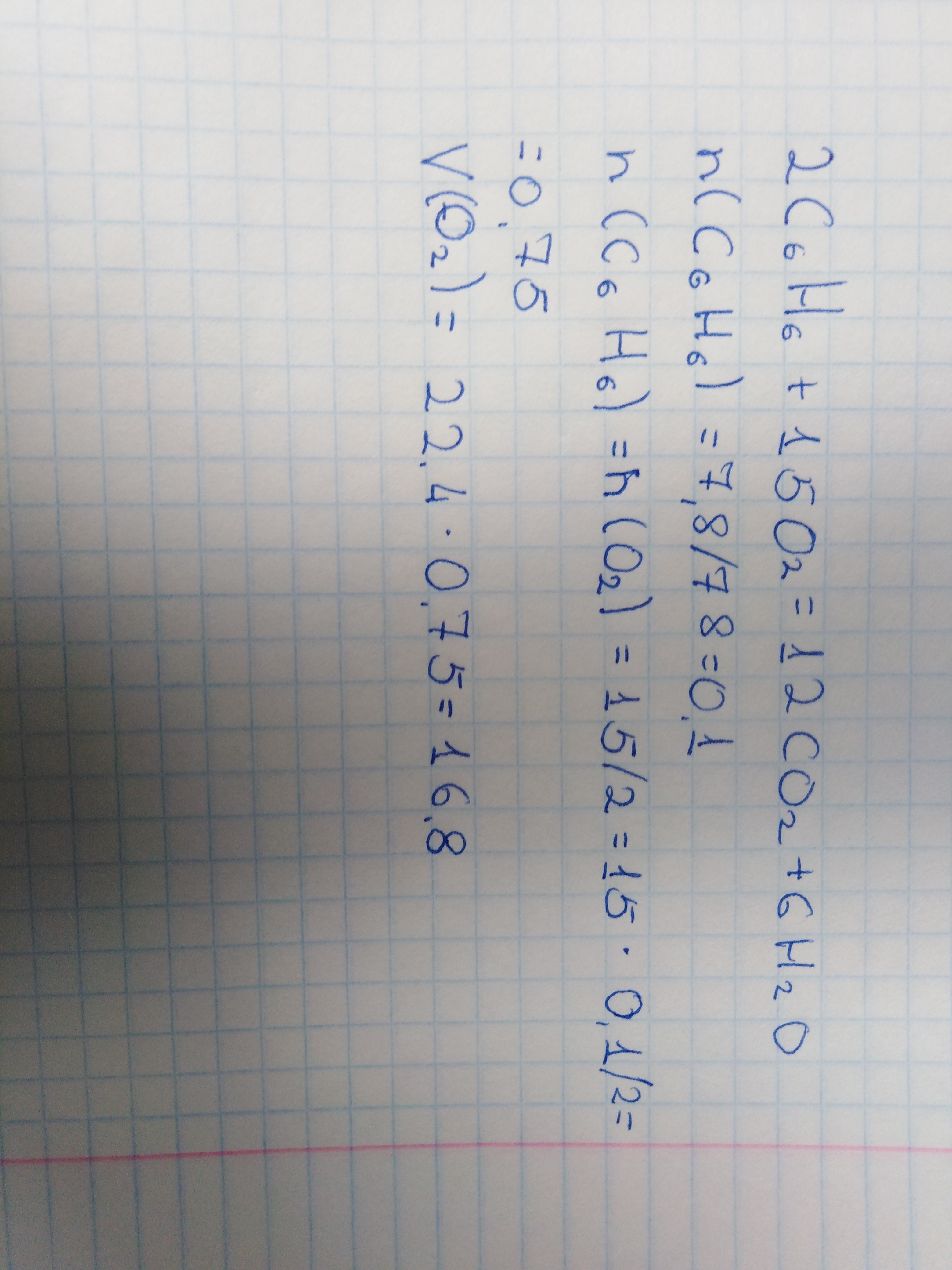 Сколько литров кислорода потреб уется для полного сгорония 7,8 г бензола