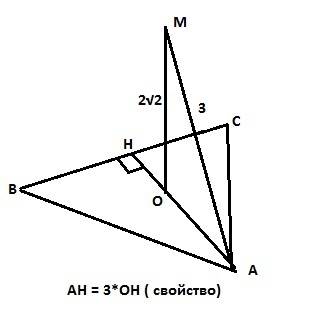 Треугольник АВС – правильный, О – центр треугольника. OM ⊥ ABC; OM = 2√2. Расстояние от точки M до вершины A равно 3. Найдите высоты треугольника. Решите пожалуйста подробно, с рисунком