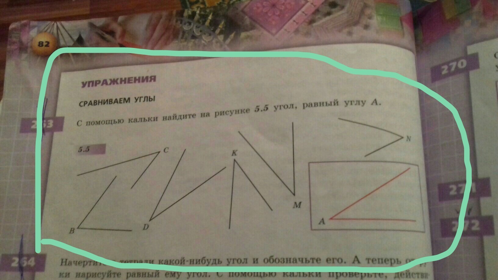 Просто все углы измерь транспортиром. И если градусная мера 1 угла будет равна градусной мере угла "а", это этот угол равен улгу " а". А вообще там сказано с помощью кальки. Поэтому берёшь кальку, перечерчиваешь угол, и потом на другие углы накладываешь перечерченный угол. И если углы совместились, то углы равны.