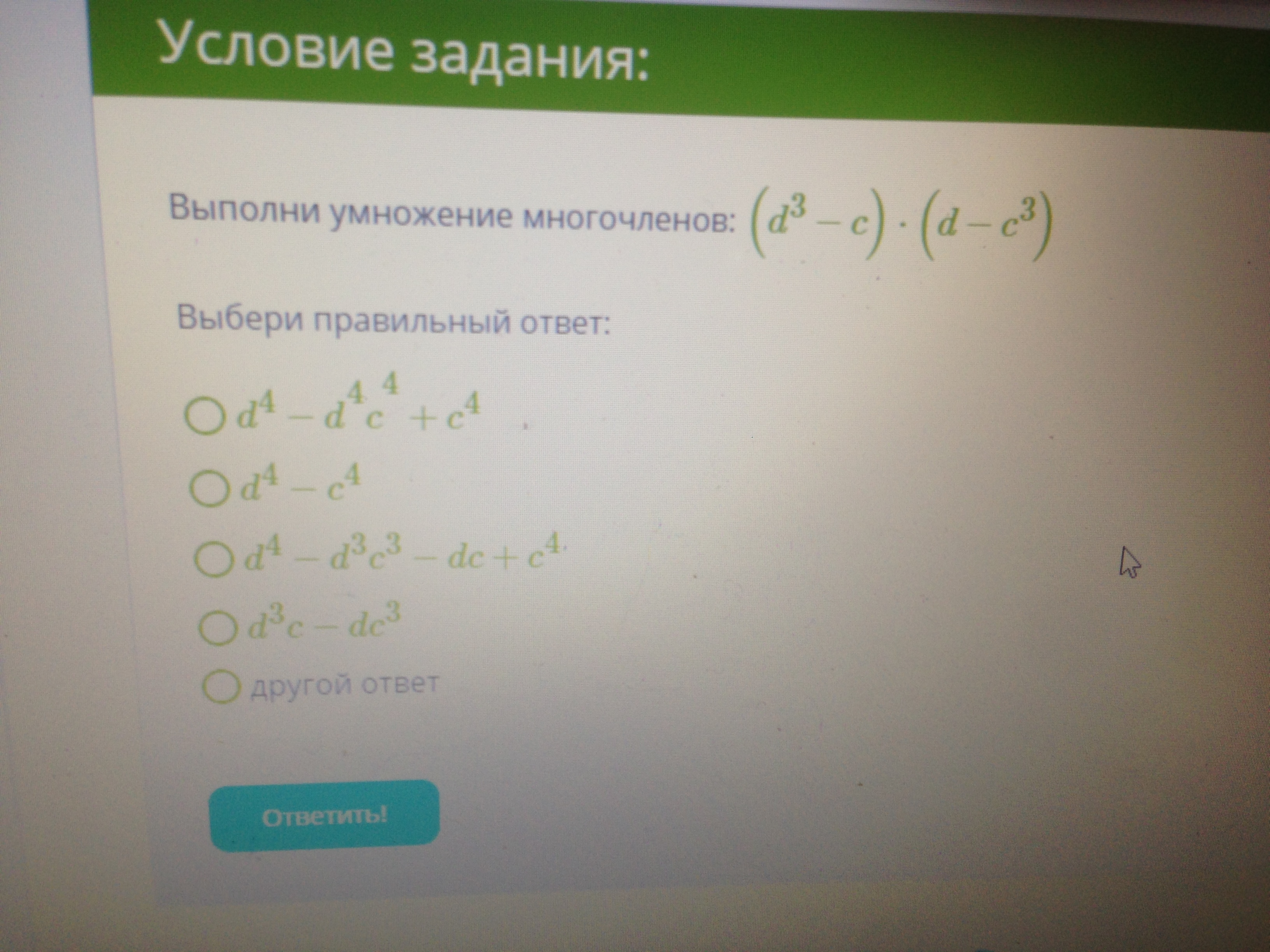 =d^4-d³c³-dc+c^4. ответ 3 правильный