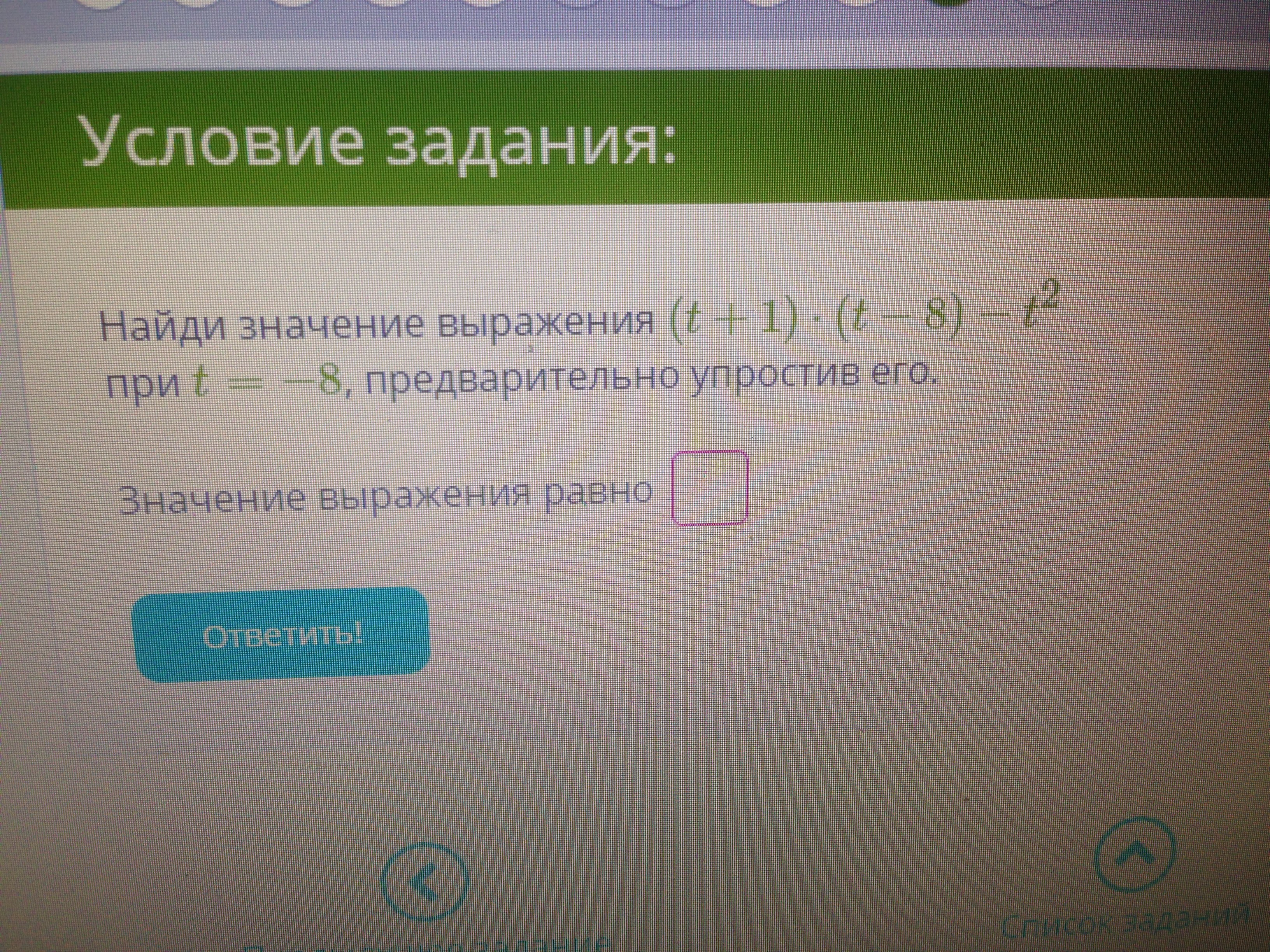 -7t-8, подставляем t=-8