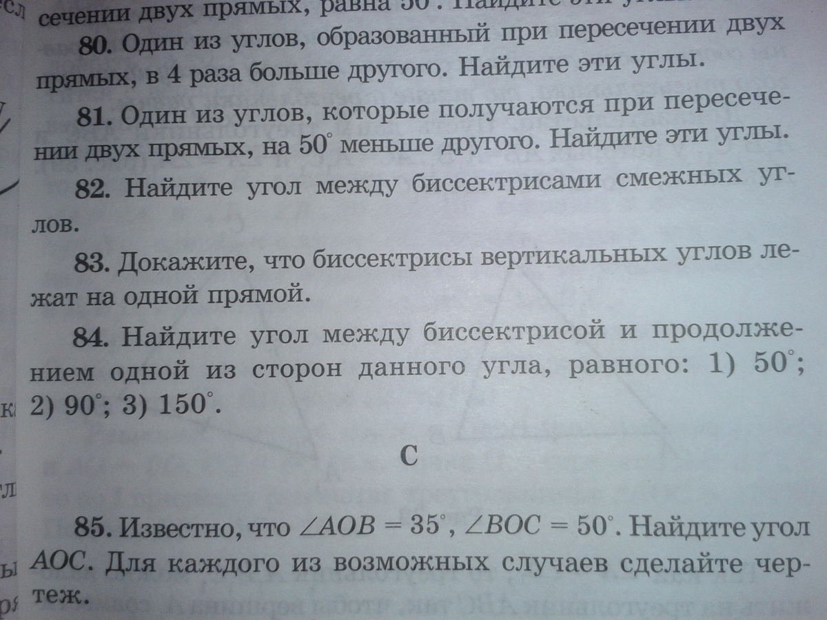 Биссектриса делит угол пополам , а при продолжении будет 2 смежных угла: 180-(50:2) =180-25=155;б)180-(90:2)=135;в)180-(150:2)=105