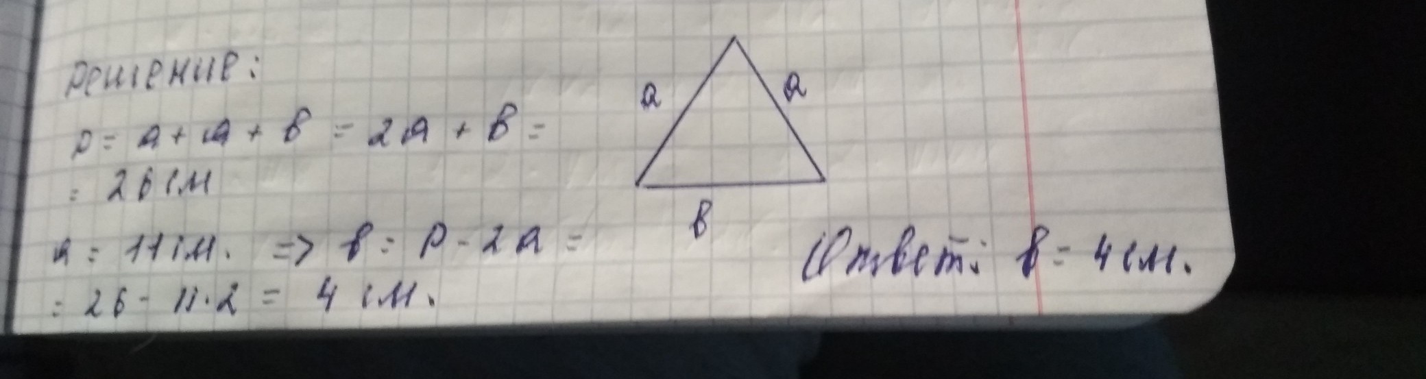 Периметр равнобедренного треугольника равен 2,6 дм, а боковая сторона - 11 см. Найдите основание.