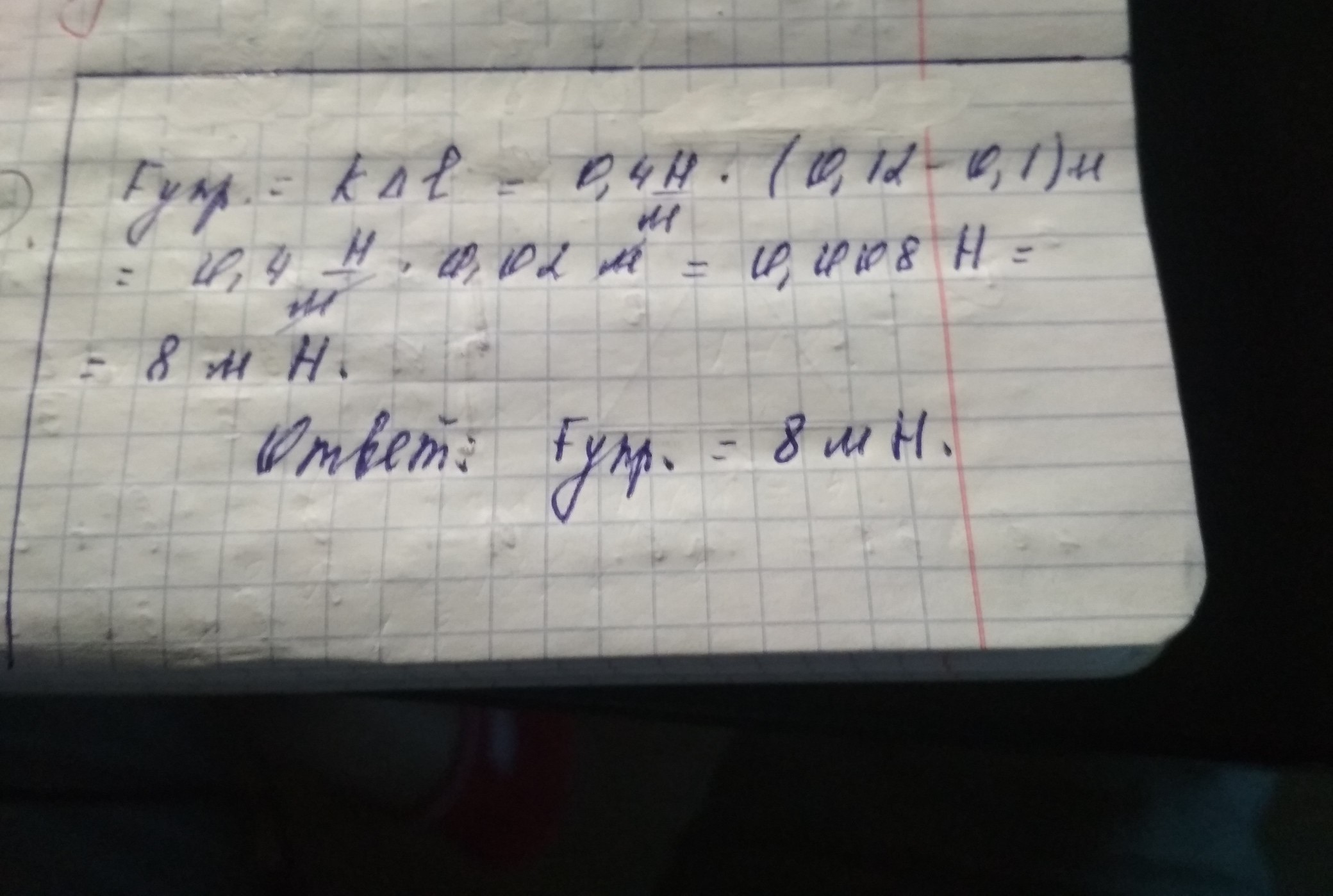 вычислите силу упругости действующую на пружину если к = 0.4 H/M а пружина удленилась от 10 до 12 сантиметров
