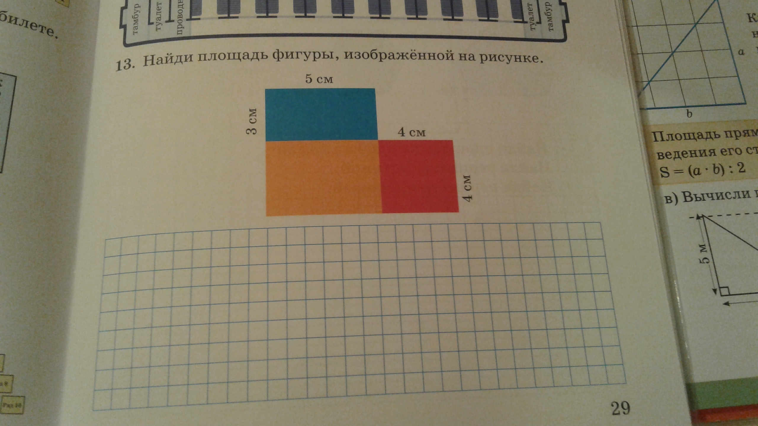 Площадь оранжевого прямоугольника = 5*4=20 см²