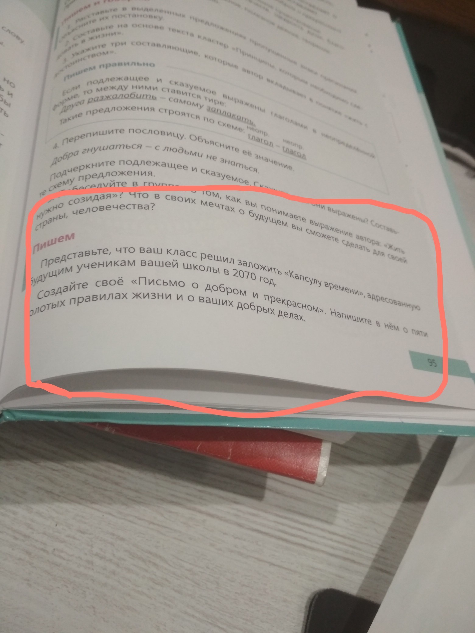 Дорогие ученики нашей школы,мы из прошлого.Если вы читаете это письмо,то вы его нашли и мы с классом хотим вам рассказать добрые и прекрасные слова нашей замечательной школе.Наша школа самая любимая,ведь в ней были наши любимые учителя и одноклассники!Сейчас вы думаете что школа это плохо,но вы всё ровно будете по ней скучать,ведь эти деньки,которыми вы учитесь,они весёлые!