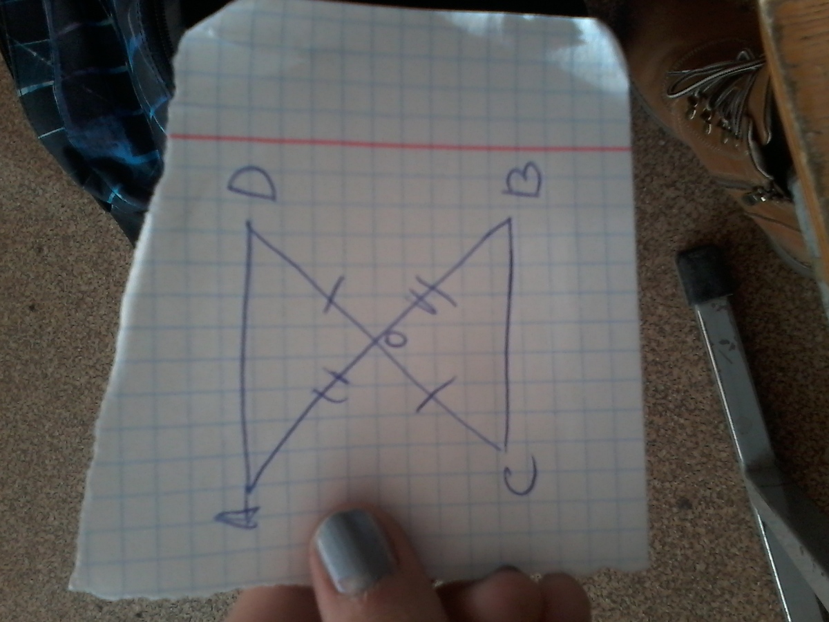 углы равны т.к они вертикальные, ну и треугольники рааны по 2 ст.и углу между ними
