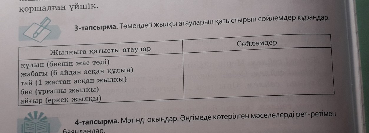 Жылқы жасына қарай: құлын, тай, құнан, дөнен, айғар деп аталады.