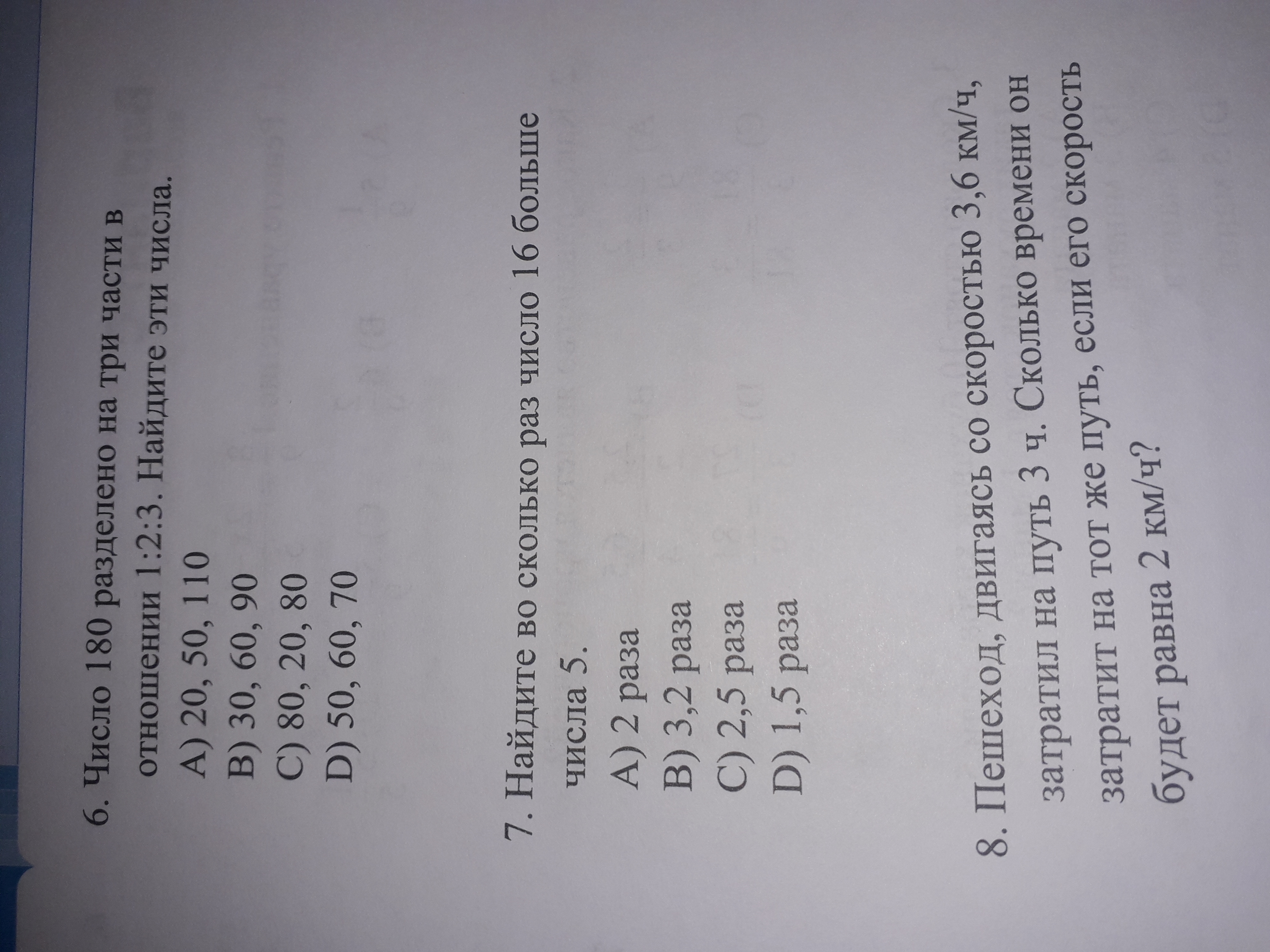 180:6=30. 30 - первое число, 30*2=60- второе число, 30*3=90- третье число. Ответ: 30,60,90