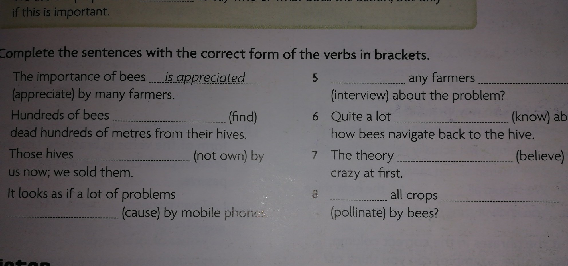 2 are found 3 are not owned 4 are caused 5 Have, been intervewed 6 is known 7 was believed 8 Have, been pollinated