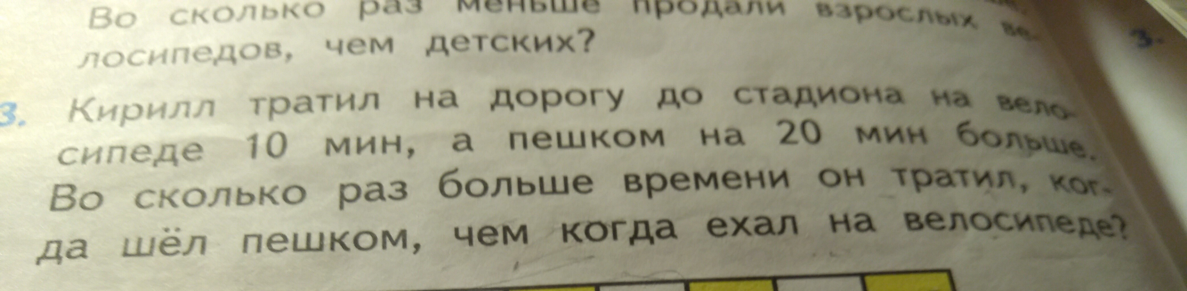 Во сколько раз больше тратил времени пешком, чем когда ехал на велосипеде?
