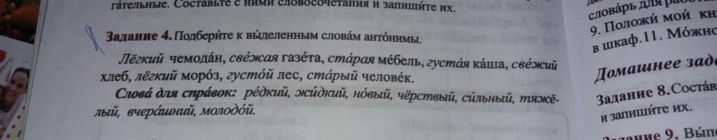 Тяжелый чемодан, вчерашняя газета, новая мебель, жидкая каша, черствый хлеб, сильный мороз, редкий лес, молодой человек
