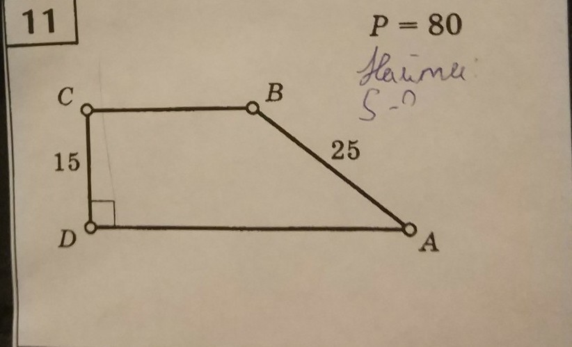 Если это трапеция, то сумма оснований - 80-(15+25)=40;