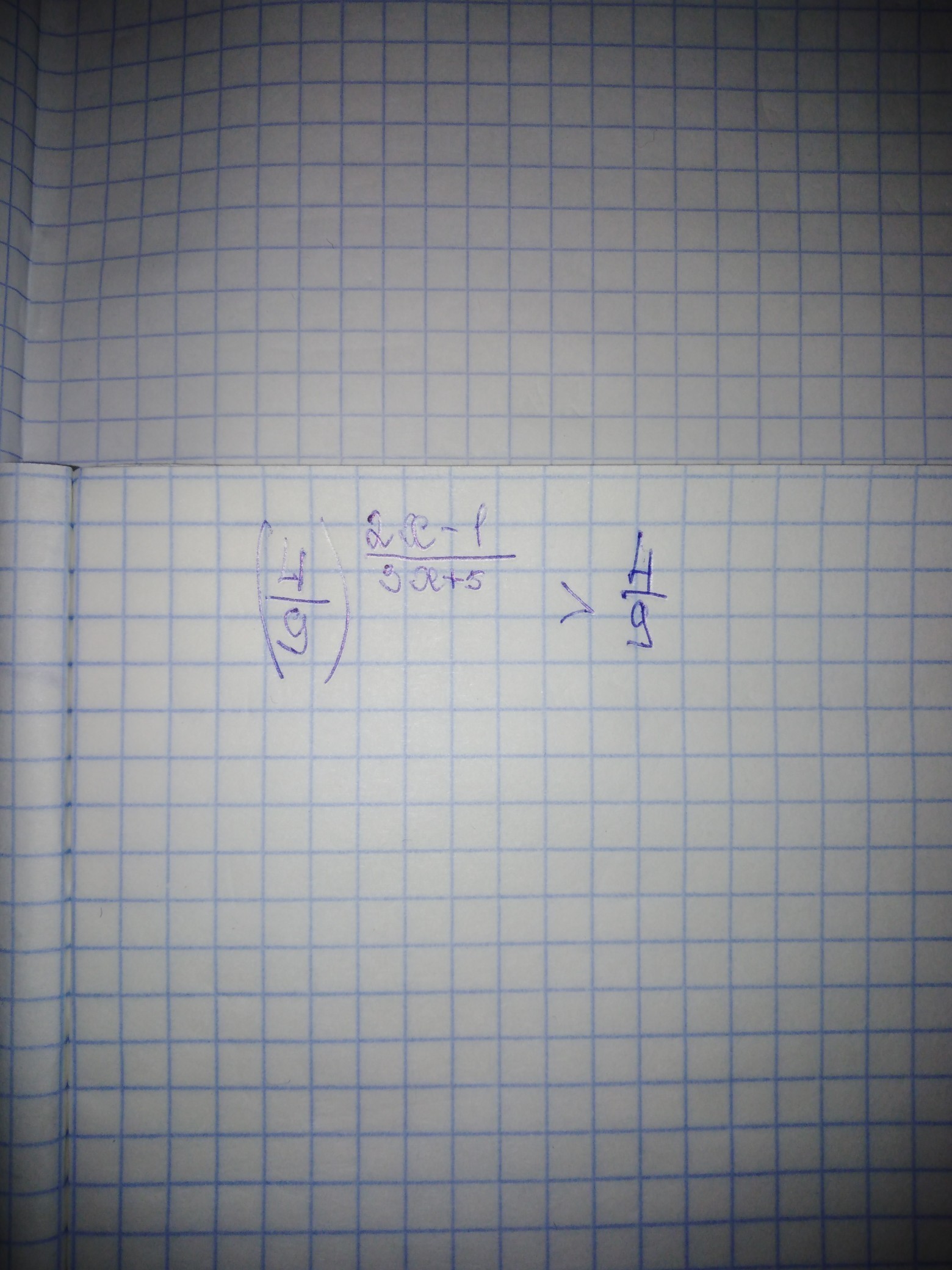 (4/9) ^ (2x-1)/(3x+5) > 4/9^1