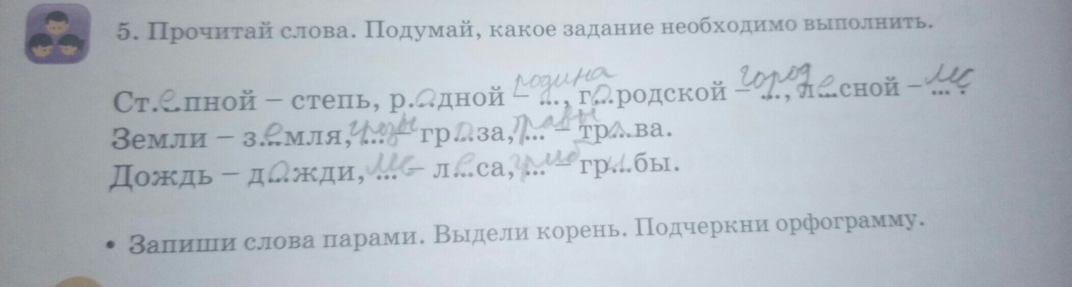 Степной-степь, родной-родина, городской-город, лесной-лес,