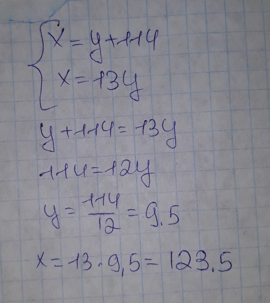 одно число больше другого на 114. меньшее из чесел в 13 раз меньше больше чему равен каждое из чесел