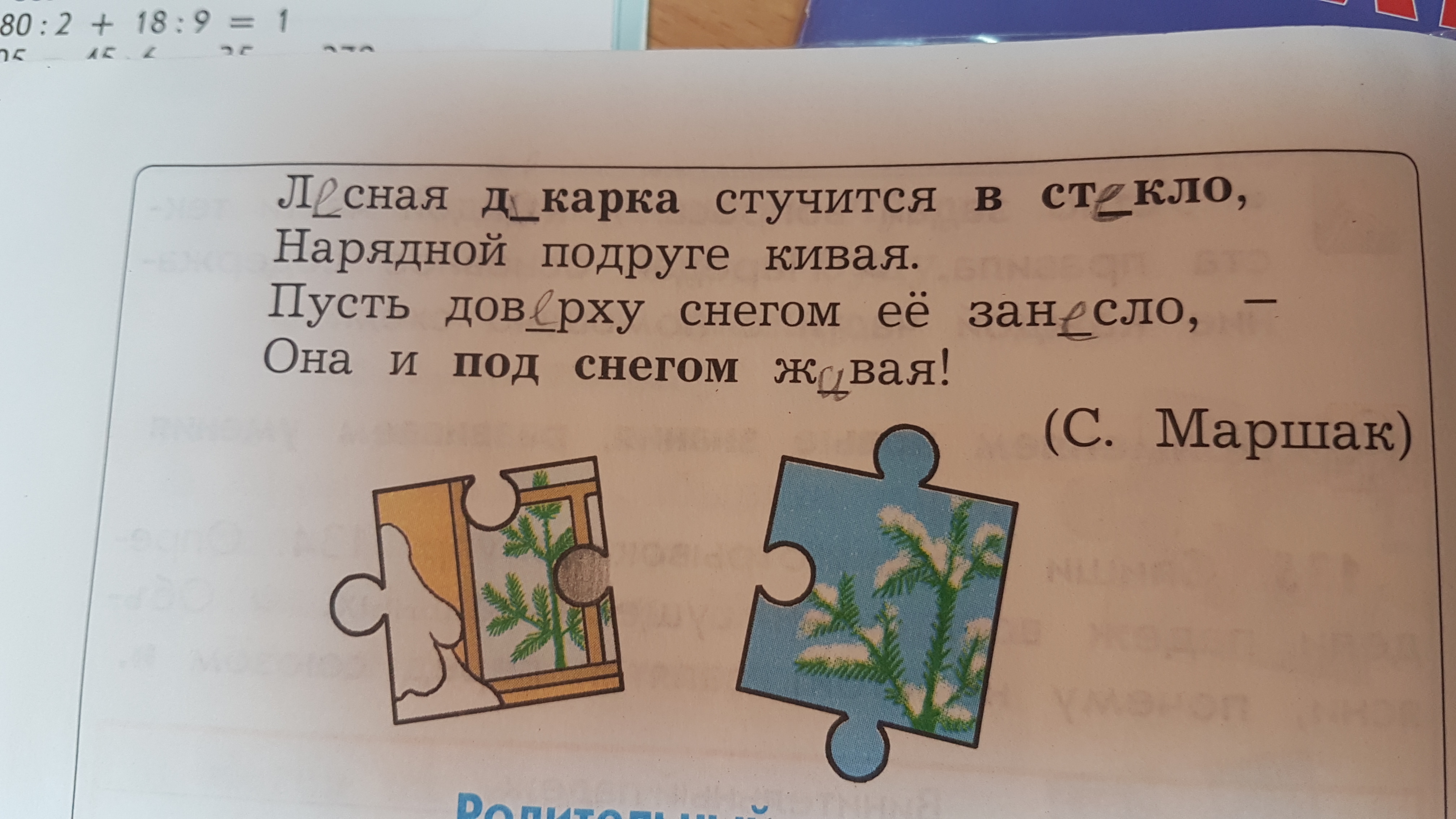 (кто?)дикарка(им.сущ), (под чем?)под снегом (глагол),(что?)ёлка (им.сущ),из (Союз),(нет чего?)леса в окно (им.сущ), (что?)изморось ёлка (им.сущ)