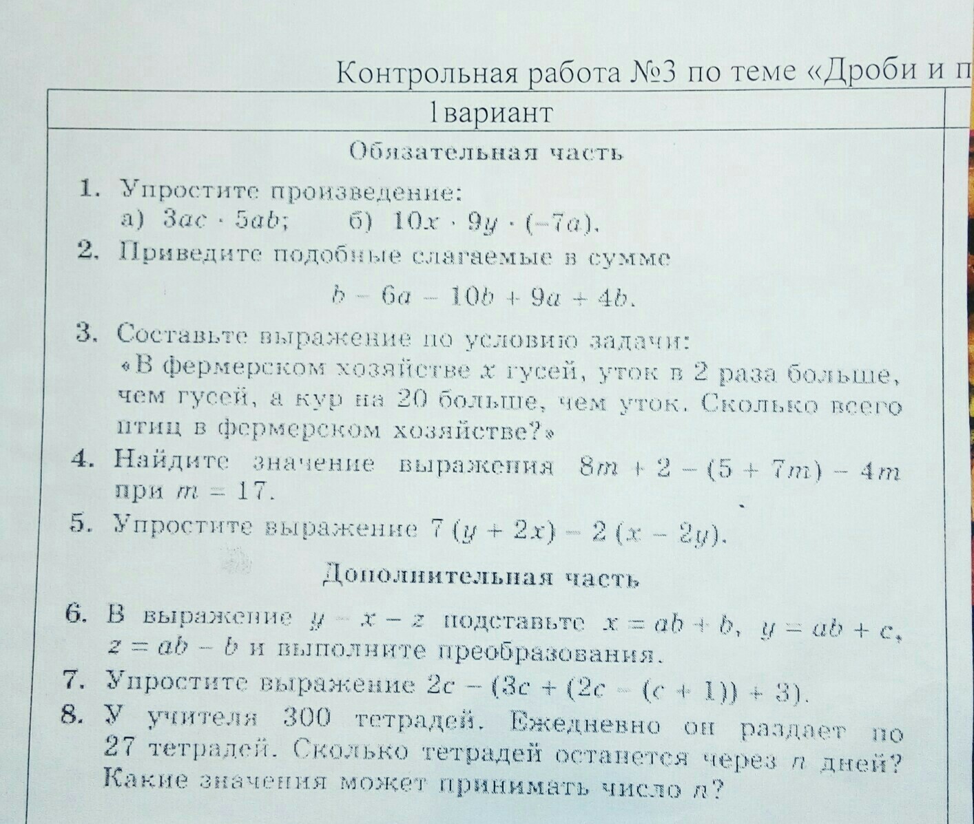 1)3ac•5ab=15a2bc,10x•9y•(-7)a=630xya,2)b-6b-10b+9b+4b=15a-7b, 3)x+2x+20 4)136+2-(5+119)-68=-44 ,5)7(y+2x)-2(x-2x)=7y+14x-2x+4x=7y+16x=23yx,