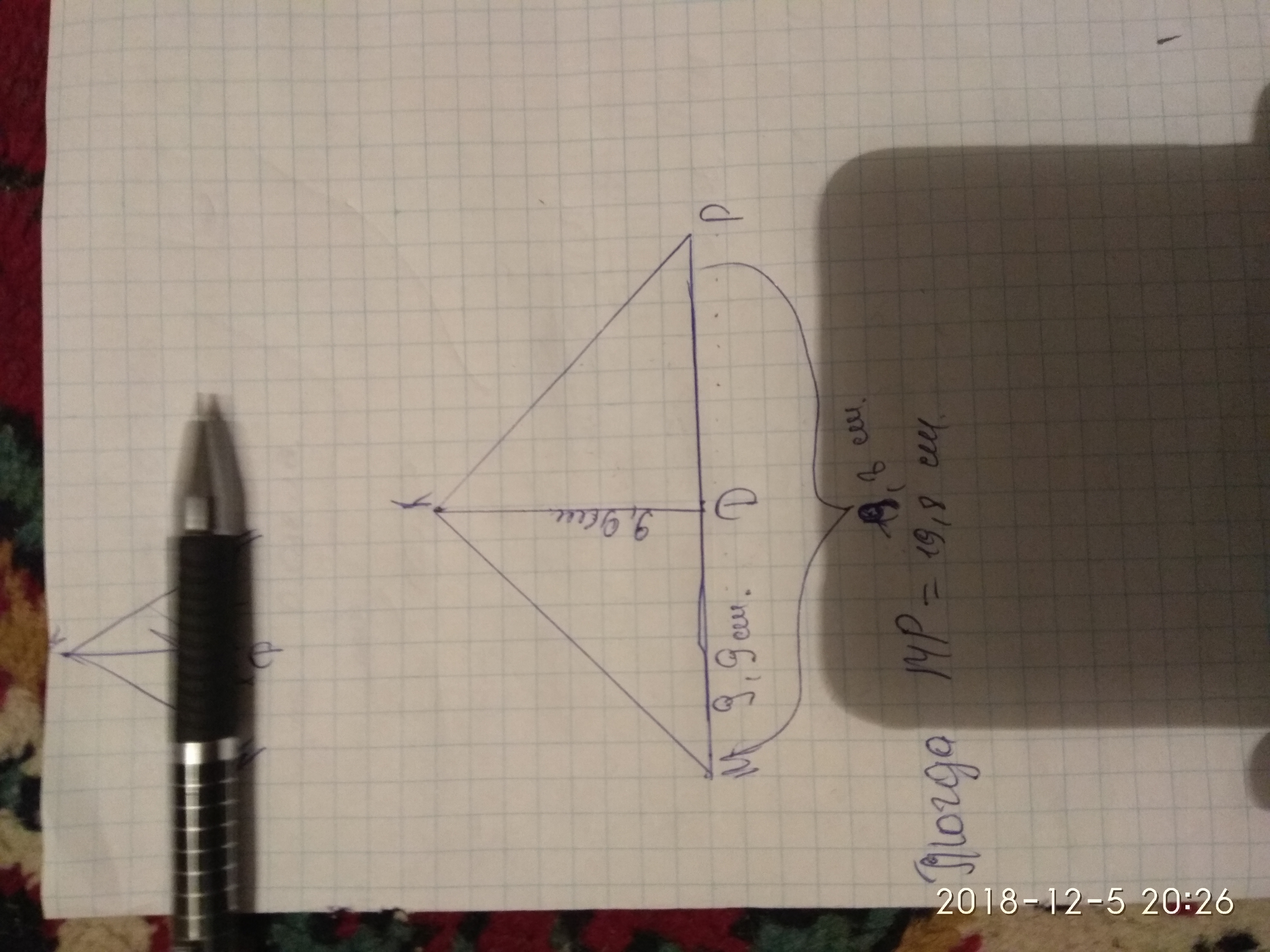 Если в равнобедренном треугольнике MKP с основанием MP проведена медиана KD и MD = 9,9 см,тогда МР=...