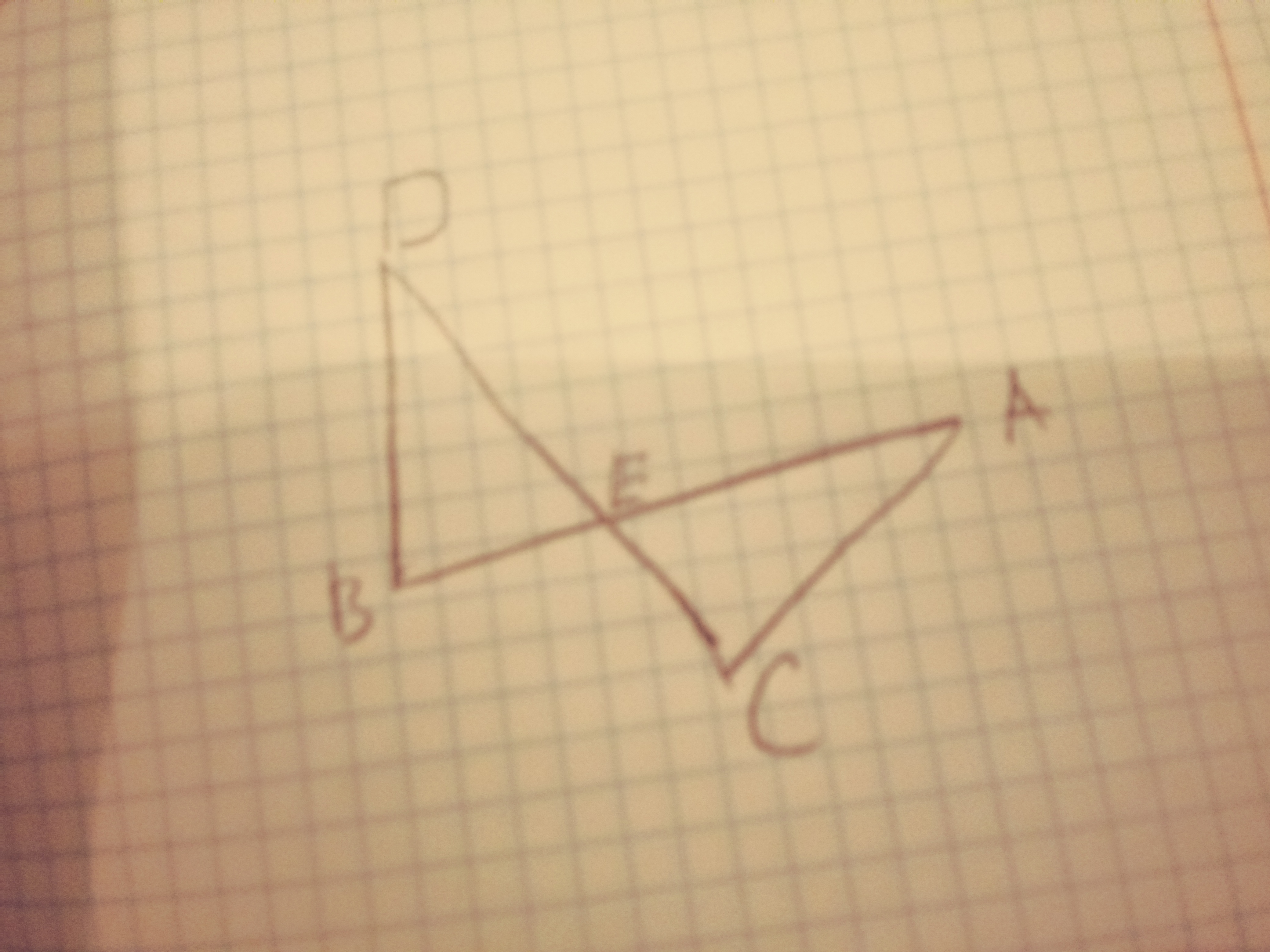 Так, на данном рисунке отрезки BA и CD пересекаются в точке E. Также, BЕ = ЕС, угол В = углу D. По какому признаку равны BEC и DEA? (Треугольники.)