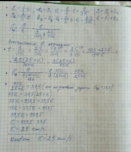 2. Среднюю путевую скорость второй машины V (Отношение всего пройдённого пути к затраченному времени)